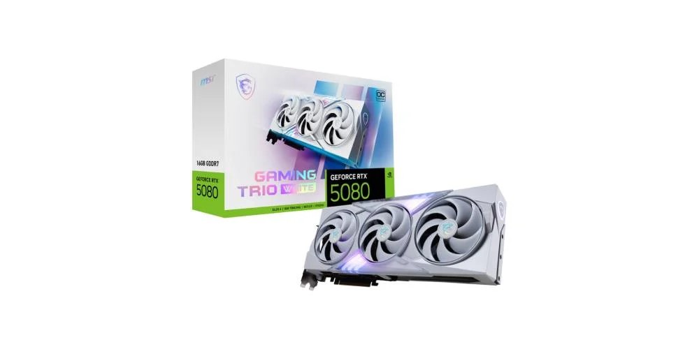 การ์ดจอ GeForce RTX™ 5080 16G GAMING TRIO OC WHITE ขับเคลื่อนด้วยสถาปัตยกรรม NVIDIA Blackwell และ DLSS 4 นำเสนอการสร้าง เฟรมหลายเฟรมใหม่ และการสร้างเรย์ใหม่และความละเอียดสูงสุดที่ปรับปรุงแล้ว เร่งความเร็วในการเล่นเกม การสร้างสรรค์ ผลงาน และการพัฒนาของคุณ ด้วยโปรเซสเซอร์ AI ในตัว คุณจะได้รับ เทคโนโลยี AI ชั้นนำระดับโลกที่ขับเคลื่อนพีซี Windows ของคุณ